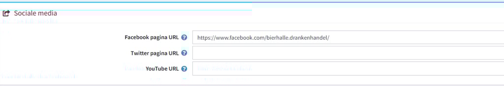 Als u graag een Twitter of YouTube link wilt toevoegen aan uw website, kunt u op deze pagina de URL toevoegen. Het icoontje verschijnt dan automatisch op uw website.