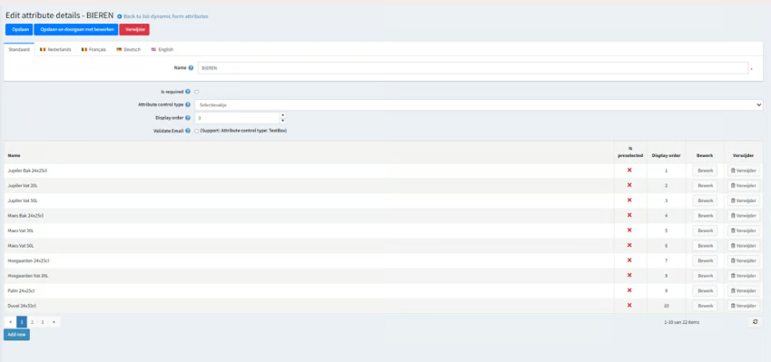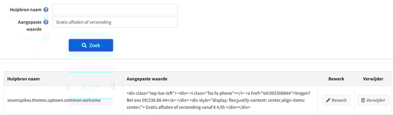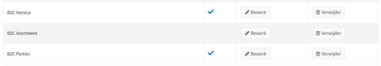 U kunt een bestaand artikel in de lijst aanpassen door op ‘Bewerk’ te klikken, of het verwijderen via ‘Verwijder’.