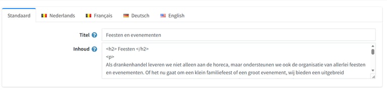 Let erop dat u de HTML-code niet aanpast. Deze HTML-code zorgt voor de opmaak van de tekst en de titels op de pagina.