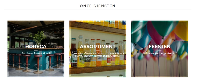 Hou rekening met de juiste afmetingen van de foto's. Als u dit niet doet, zal de website er niet correct uitzien.