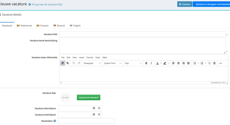 Met dit systeem kunt u vaak voorkomende vacatures ook offline halen door de einddatum voorbij de huidige datum te zetten. Als de vacature later weer nodig is, kunt u deze eenvoudig opnieuw activeren door de datums aan te passen, zonder al te veel werk.