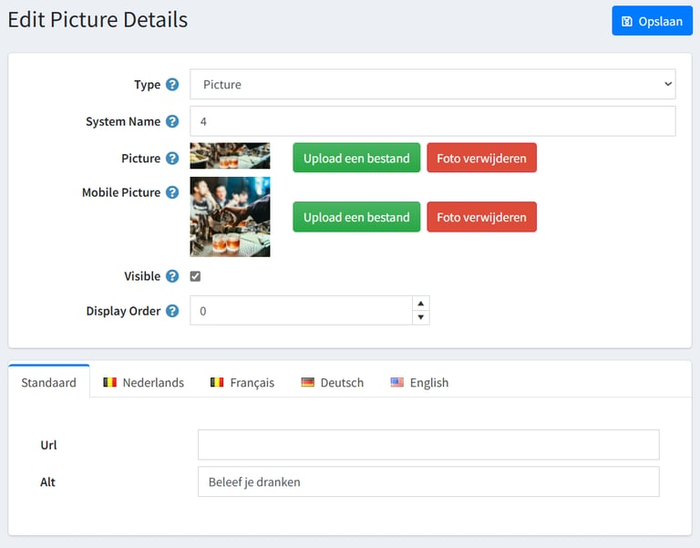 Vergeet niet om uw wijzigingen op te slaan door bovenaan op de blauwe knop ‘Opslaan’ te klikken.