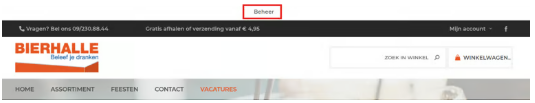 Zodra u bent ingelogd, ziet u bovenaan de website een knop 'Beheer'.